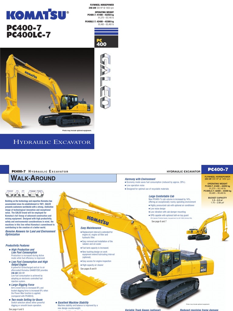 PC400-7 PC400LC-7 Flywheel Horsepower Operating Weight Hydraulic Excavator Walk-around Productivity Features High Production and Low Fuel Consumption Low Fuel Consumption and High Output Engine Large Digging Force Two-mode Setting for Boom Excellent Machine Stability Higher Lifting Capacity Easy Maintenance High-capacity Air Cleaner Harmony With Environment Large. Excavator lifting capacity chart. It has been sold without air Aircondition Track adaption and Blade as of 1998.